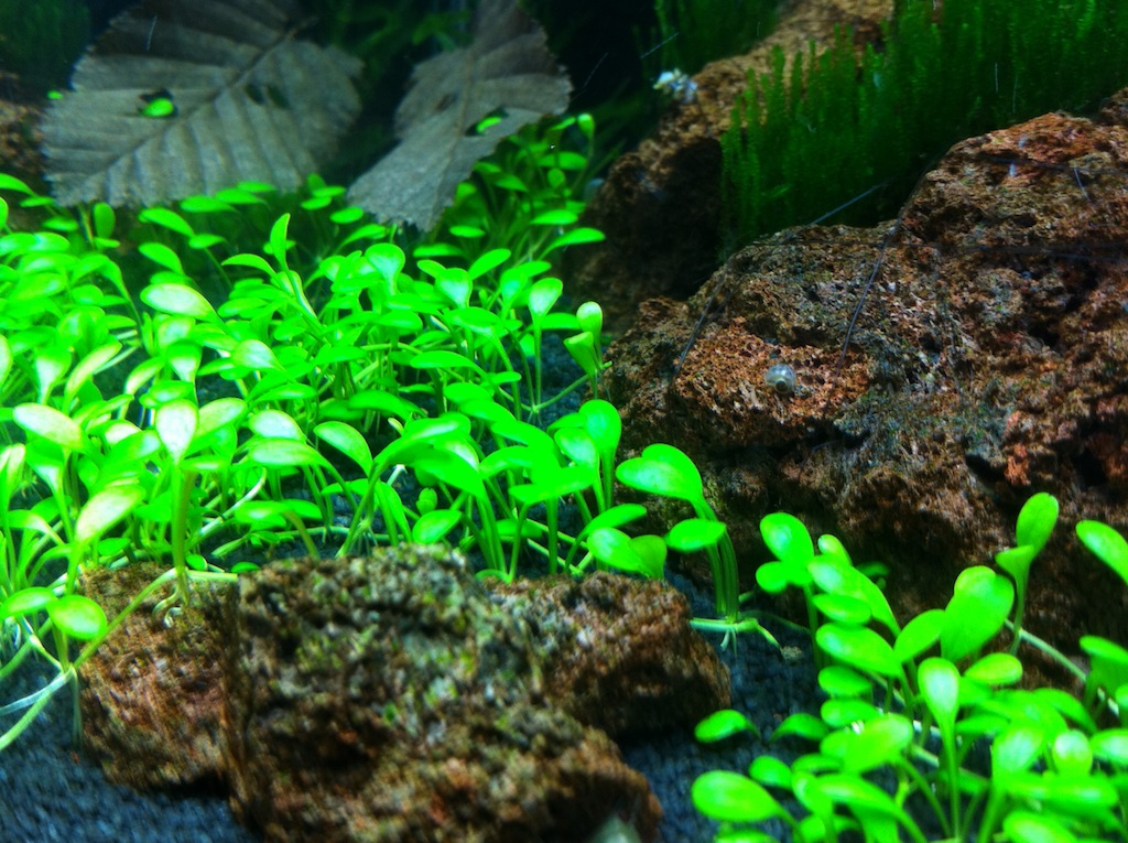 Hinten sitzt ein Blyxa aubertii Steckling.
