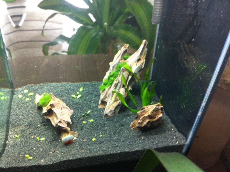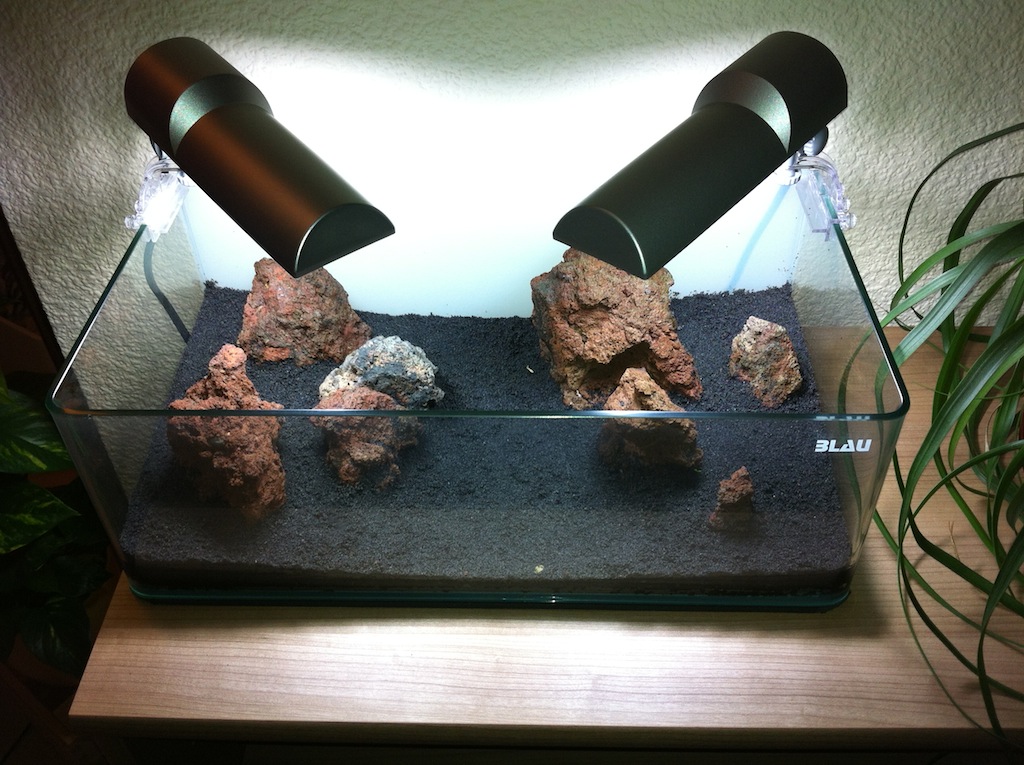 So Pflanzen wurden gesetzt, alles angeschlossen jetzt fehlen nur noch die Garnelen. Sieht alles noch etwas wüst aus und ich bin gespannt wann die ersten Algen kommen bis die Pflanzen soweit sind eine Konkurrenz dazustellen.