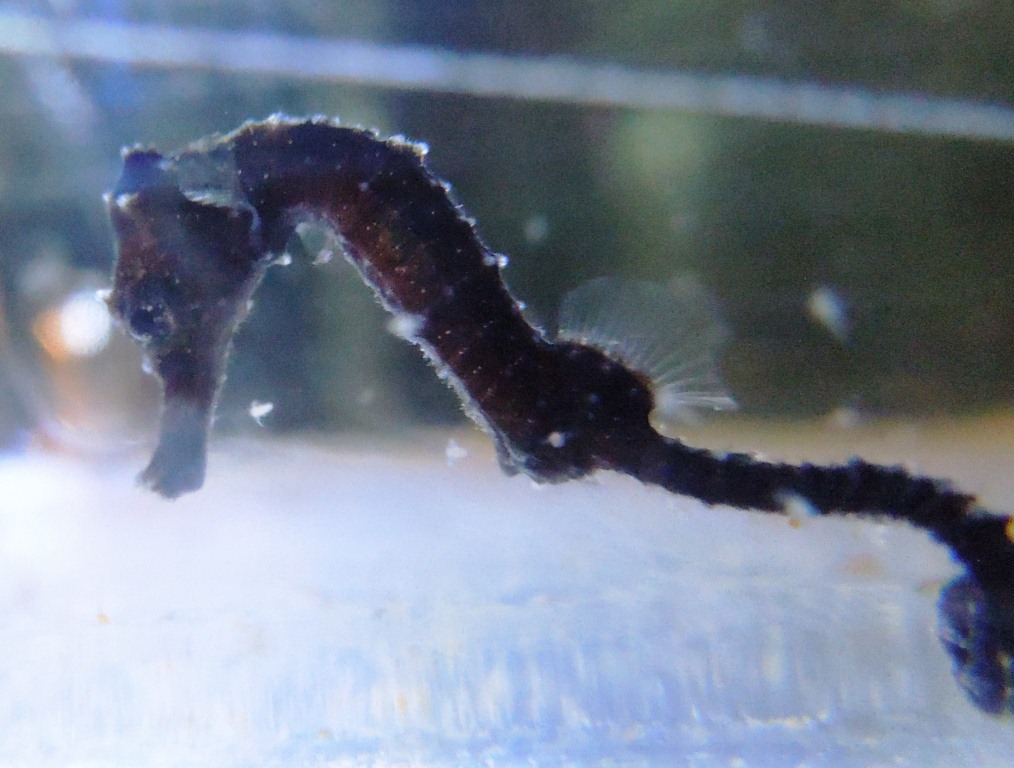 Ein mittlerweile 5 Wochen altes Hippocampus reidi Baby, also die gleiche Art, wie meine. Es hängt in einer Breedingbox an meinem 36l Yasha Meerwassernano und futtert was das Zeug hält. Mit etwas Glück ist also bald reidi Nr. 4 dabei <3 .