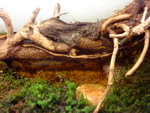 Es geht übrigens ganz leicht, ein wenig bewegtes Wasser in so eine Mooslandschaft zu integrieren. Ich hab so ein Terrarium eingerichtet für meine Feuersalamander-Babies.
