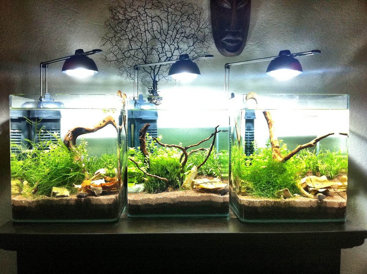 Aktuell laufen bei mir 7 Nano-Cubes zwischen 15 - 60l. Ein Cube mit Red Fire Sakuras, der Rest mit Red Bee/Black und Taiwaner Mischlingen.