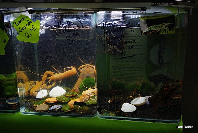 Wenn ihr eine Messe besucht und dort etwas kaufen wollt schaut genau in die Becken. In einem 20l Cube haben keine 5 ausgewachsenen Krebse und 50 Amanos und dazu noch Bienengarnelen zu suchen. Schaltet euren Verstand und das Herz ein. Es gab zwar nur ein Händler (zumindest mir nur aufgefallen), aber es war einer zuviel. Solche Händler haben auf einer Messe nichts zu suchen...