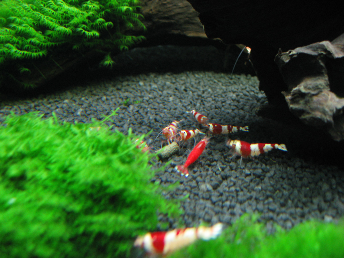 Also das ShrimpKing Futter kommt echt bombig an... lustig ist irgendwie, dass bei dem Proteinfutter, welches sie einmal pro Woche bekommen, sitzen anschließend (nach dem totalen Fress-Hype) alle vollkommen regungslos um die Futterstelle drum rum... Man könnte meinen alle wären völlig überfressen...