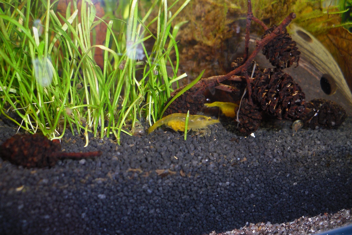 Eeeeendlich zeigen sich die Kleinen mal öfter :) Heute konnte ich mit meienr schlechten Kamera die ersten Bilder machen, auf denen man auch sowas wie eine Garnele erkennen kann. Ich bin immernoch total fasziniert, wie klein die sind.