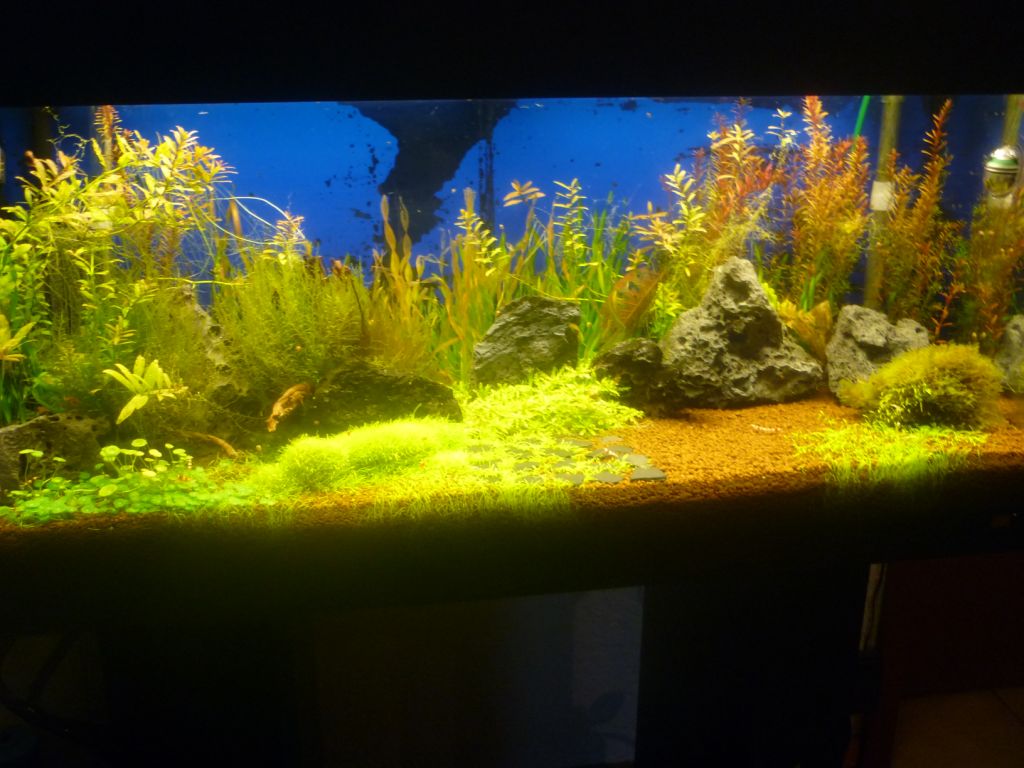 Hatte vorher Hemianthus Callitrichoides als Bodendecker drin die hat es aber leider wegen der Schwachen beleuchtung nicht geschaft finde es sieht aber auch so ganz gut aus.