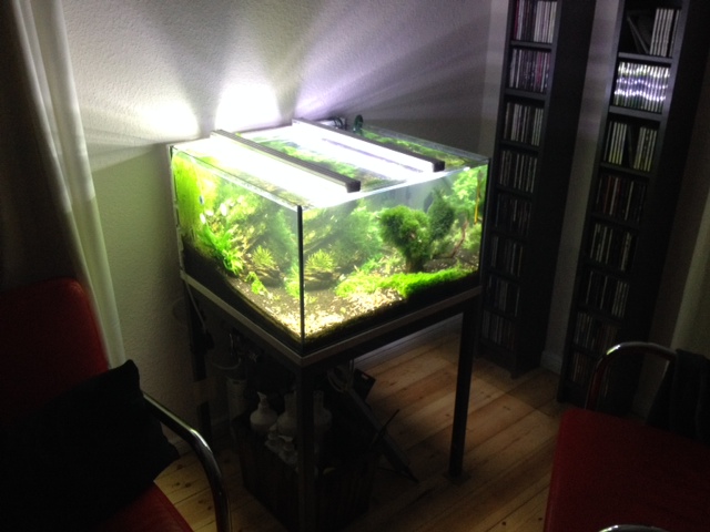 nun ist das neuste Projekt quasi abgeschlossen, daher hier nun auch wieder neue Fotos und ein wenig Text. Seit ich vor einem guten Jahr von meine 1W/l T5 Beleuchtung zu LED gewechselt bin, hat der Pflanzenwuchs deutlich nachgelassen. 3 LED Solar Stinger mit je 12 Watt ließen zwar auch HCC etc. wachsen, allerdings langsamer und irgendwie nicht ganz so gut (mein Gefühlt).