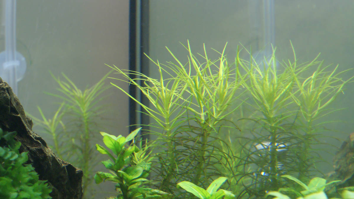 Den zunächst angeschlossenen Eheim 2226 tauschte ich gegen einen neuen Eheim Ecco, um den Stromverbrauch zu senken. Nur fünf Watt bei ausreichendem Durchzug ist schon mal ne Hausnummer. Zudem wurden 2 der vier T5 Röhren in der Lampe von 24 Watt in die baugleiche 14 Watt Stromspar-Variante getauscht. So habe ich nun statt 96 Watt auf 90l netto zwar nur 76 Watt, es ist aber durchaus genug und die 14W Röhren stehen in Sachen Helligkeit der 24W Ausführung in nichts nach.