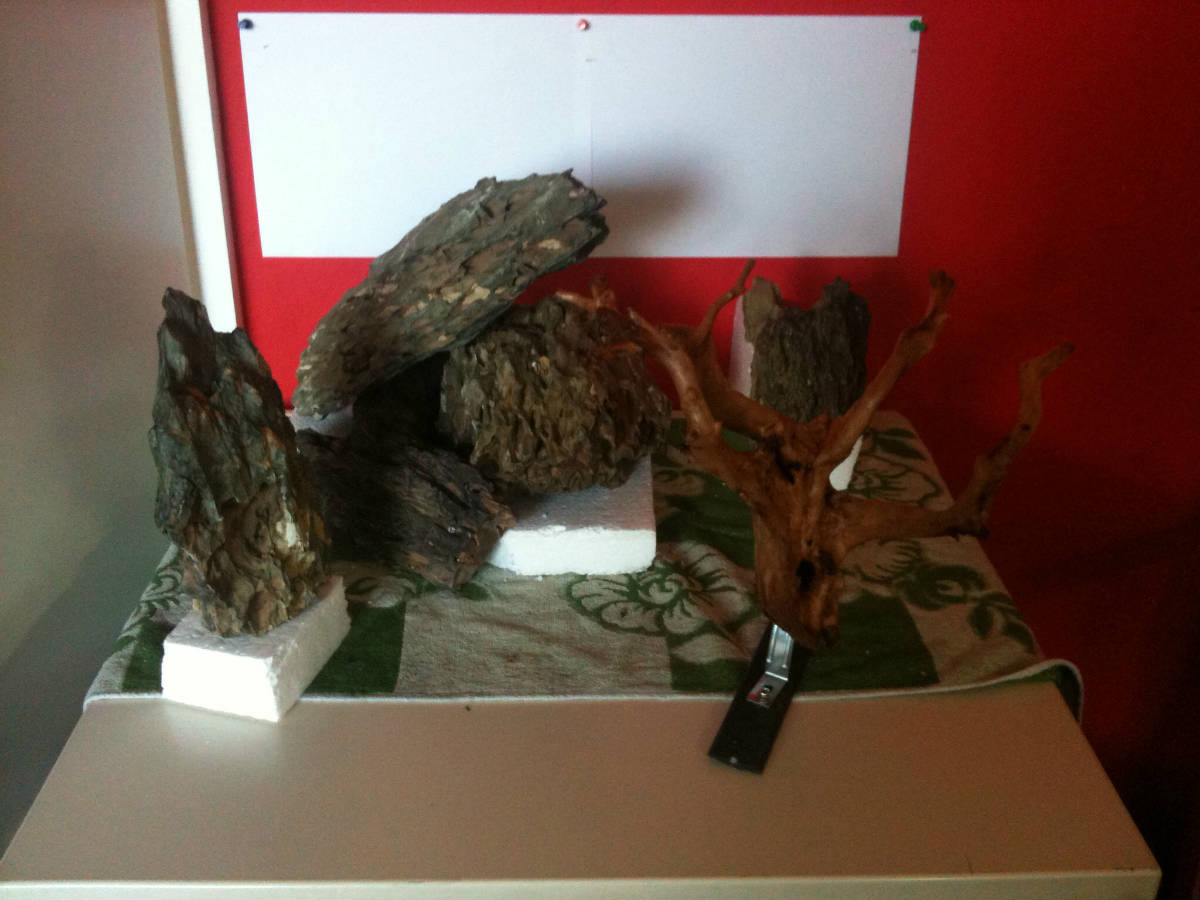 Ich vergaß unter Teil 1 zu erwähnen, warum ich so viele Ideen bei der Layoutplanung wieder verworfen habe. Das Becken steht so, dass es von drei Seiten betrachtet werden kann. Auf der einen Seite steht ein Sessel zum bequemen beobachten, frontal gucke ich vom Schreibtisch darauf, und wenn man die Tür schließt, ist die linke Seite offen sichtbar. Daher war es nicht so einfach z. B. den Anstieg des Bodengrundes zu planen. Heraus kam dann dieser "Kompromiss", dass der Boden nach hinten zwar ansteigt, aber halt nicht so stark wie sich das mancher vielleicht gewünscht hätte. Zudem steigt er von beiden Seiten zur Mitte (oder fast Mitte) an, so dass man von allen Seiten nicht zu viel Boden im Blick hat. Die Zeit wird zeigen, ob das aufgeht.