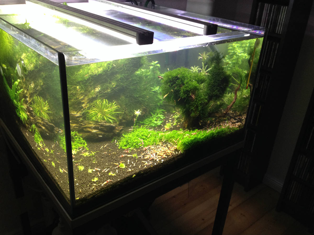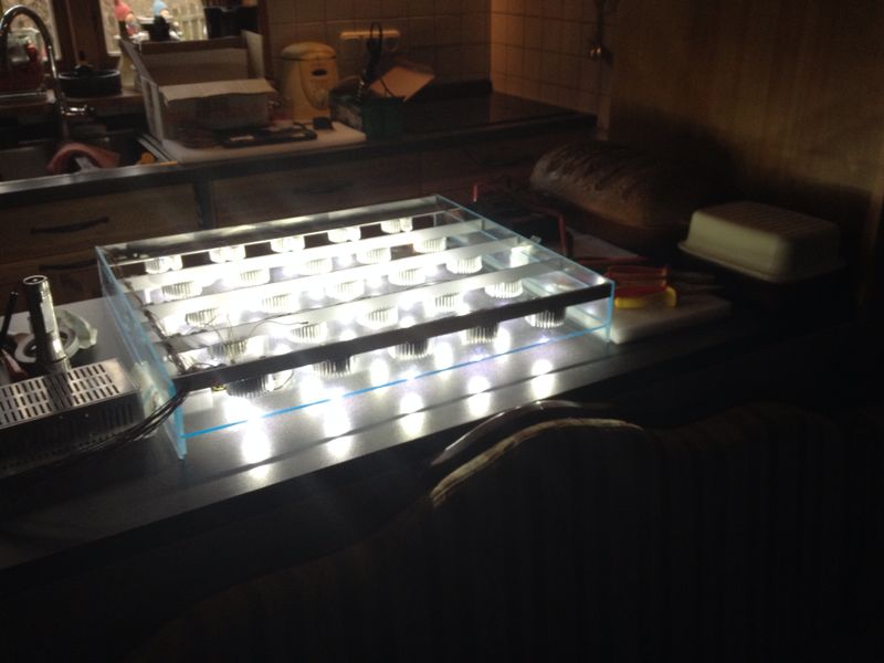 nun ist das neuste Projekt quasi abgeschlossen, daher hier nun auch wieder neue Fotos und ein wenig Text. Seit ich vor einem guten Jahr von meine 1W/l T5 Beleuchtung zu LED gewechselt bin, hat der Pflanzenwuchs deutlich nachgelassen. 3 LED Solar Stinger mit je 12 Watt ließen zwar auch HCC etc. wachsen, allerdings langsamer und irgendwie nicht ganz so gut (mein Gefühlt).