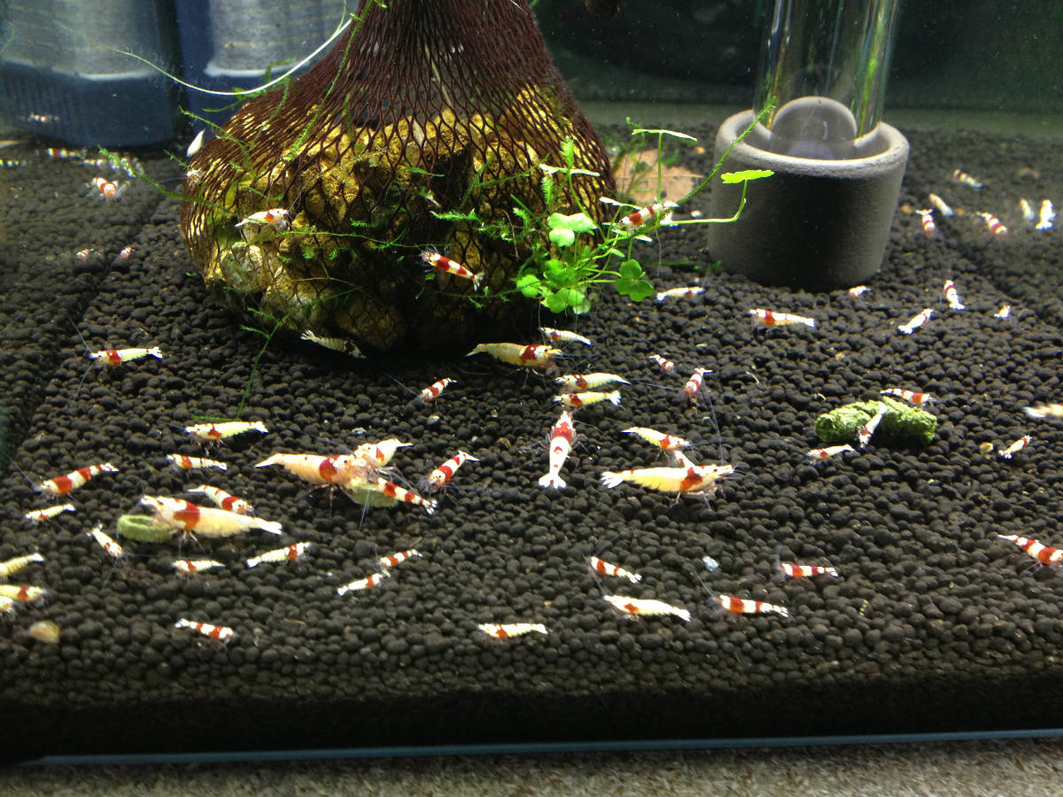 Becken 2: Ich habe mich dazu entschlossen, den PRL Red Bee Stamm, toBee zu nennen und nicht bei Akabachi zu bleiben. Akabachis habe ich nach wie vor, allerdings im Poolbecken und da diese keine PRL mehr sind, wäre ein New-Akabachi-Stamm irreführend. Hier sitzen nun 3 Beni-Männchen mit im Becken. Die ersten Kleinen sind da und viele Eier tragende Weibchen sind auch noch zu sehen.