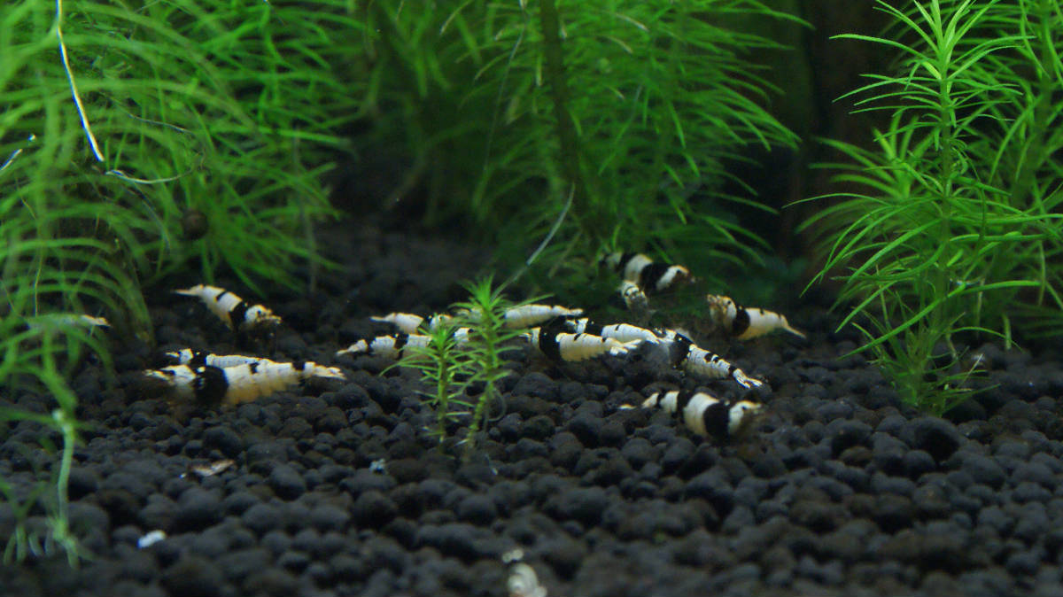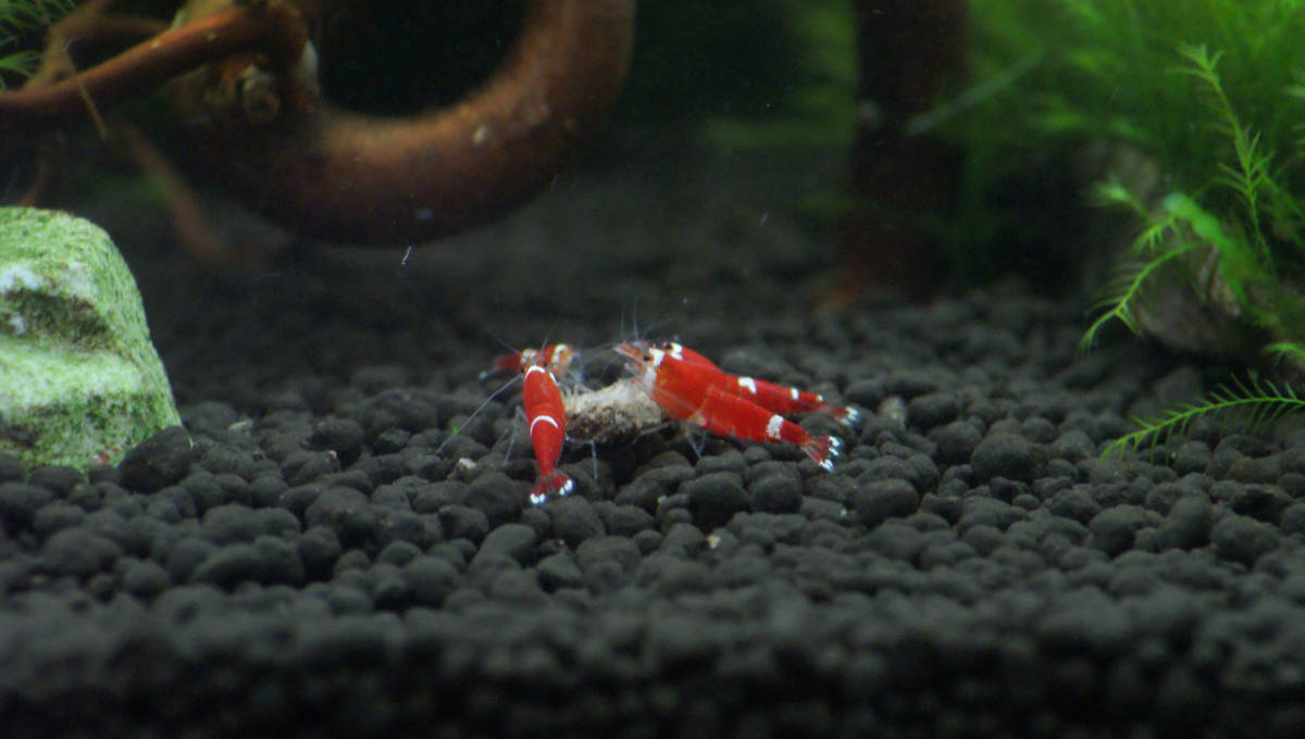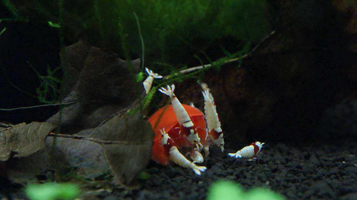 In Becken 3 ist ein Stamm SCR (Super Crystal Reds) eingezogen, der aus 18 Tieren besteht. Ich habe ein paar Fotos unmittelbar nach dem Eingewöhnen geschossen. Die Farben haben sich bereits etwas erholt. Bin gespannt, was hier in den nächsten Wochen passiert.