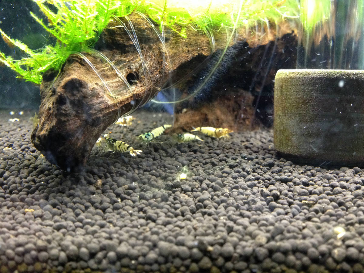 Becken 2: Ich habe mich dazu entschlossen, den PRL Red Bee Stamm, toBee zu nennen und nicht bei Akabachi zu bleiben. Akabachis habe ich nach wie vor, allerdings im Poolbecken und da diese keine PRL mehr sind, wäre ein New-Akabachi-Stamm irreführend. Hier sitzen nun 3 Beni-Männchen mit im Becken. Die ersten Kleinen sind da und viele Eier tragende Weibchen sind auch noch zu sehen.