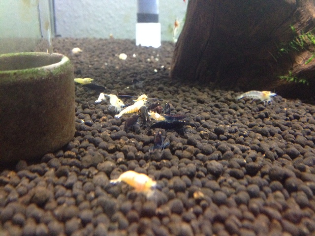 Becken 2: Ich habe mich dazu entschlossen, den PRL Red Bee Stamm, toBee zu nennen und nicht bei Akabachi zu bleiben. Akabachis habe ich nach wie vor, allerdings im Poolbecken und da diese keine PRL mehr sind, wäre ein New-Akabachi-Stamm irreführend. Hier sitzen nun 3 Beni-Männchen mit im Becken. Die ersten Kleinen sind da und viele Eier tragende Weibchen sind auch noch zu sehen.