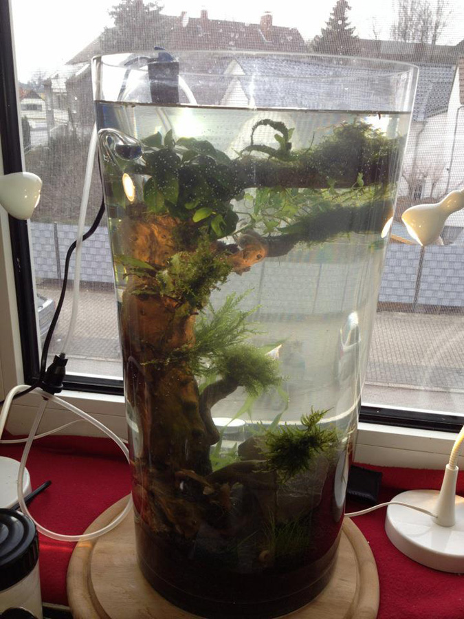 ) und hätte da mal ne kleine Frage! Muss ich da nen Filter dran bauen? Ich habe im Internetz etliche Garnelen Vasen ohne Filterung gesehen und dachte, dass das kein Problem darstellt. Wobei so ein kleiner Rucksackfilter natürlich ne Idee ist und bei Ulli sieht man ja sehr schön, dass der sogar an die runde Vase angebracht werden kann....