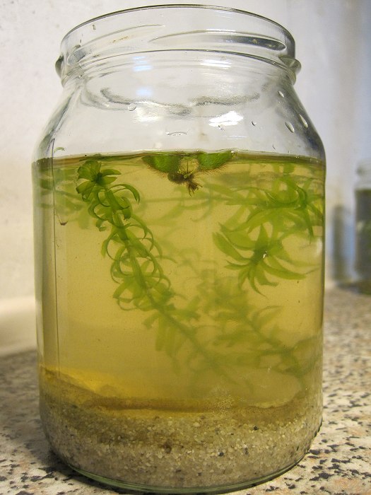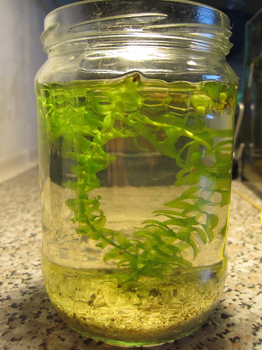 Als ich in meiner Terrassenbütt dann geschenkte Spitzschlammschnecken mit drin hatte, sorgten die natürlich für neue Gelege ... und die habe ich separiert ... ein weiteres Gurkenglas musste her. Inzwischen habe ich lauter "Sommersprossen" ... Nanos eben ... und ein Deckel ist nun auf dem Gurki, weil SSS-Nanos gerne abhauen.