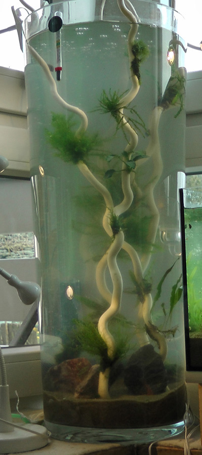 Leider verzögert sich der Einzug der fürs Ex1 geplanten orangenen Posthornschnecken. Hoffentlich klappt das bald... Die paar Blasenschnecks und TDS schaffen das nicht alleine...