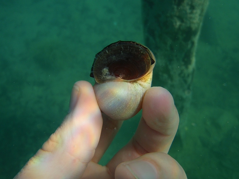 Ich komme gerade aus Yucatan/Mexiko zurück, wo ich ein paar Schnecken gesehen habe, die ich euch nicht vorenthalten möchte. Es scheint sich dabei um Pomacea flagellata zu handeln, eine Art die ich bisher nicht gekannt habe. Aus meinen Schnorchelgängen in den Laguna Bacalar weiß ich, dass es sie in verschiedenen Farben und z.T. auch mit Streifen gibt und sie werden doch ziemlich groß, jedenfalls größer als unsere bekannten Apfelschnecken. Hier ist mal ein Link mit etwas mehr Info: backyardnature.net/yucatan/pomacea.htm