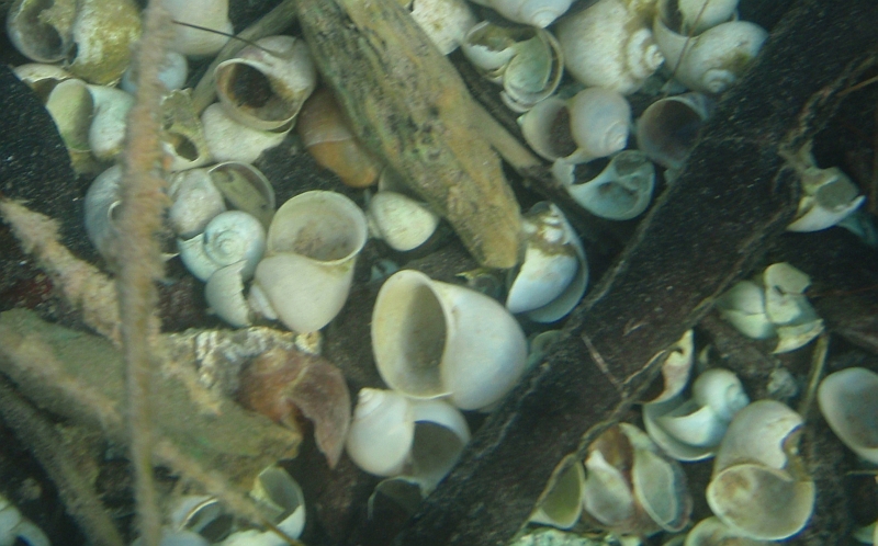Ich komme gerade aus Yucatan/Mexiko zurück, wo ich ein paar Schnecken gesehen habe, die ich euch nicht vorenthalten möchte. Es scheint sich dabei um Pomacea flagellata zu handeln, eine Art die ich bisher nicht gekannt habe. Aus meinen Schnorchelgängen in den Laguna Bacalar weiß ich, dass es sie in verschiedenen Farben und z.T. auch mit Streifen gibt und sie werden doch ziemlich groß, jedenfalls größer als unsere bekannten Apfelschnecken. Hier ist mal ein Link mit etwas mehr Info: backyardnature.net/yucatan/pomacea.htm
