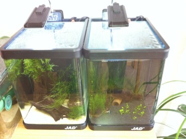 2 Becken etwas kleiner als die 4 und LED Beleuchtung. Die Becken sind etwas kleiner, wobei sich die Garnelen doch sehr wohl fühlen, was vielleicht an dem sehr groß dimensionierten Filter liegt. Dabei kann man sicher schon von einem Biofilter reden.