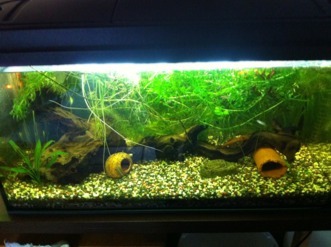 Dann habe ich noch ein 200l, ein 80l und ein 54l. Im 54er sind ausschließlich kleine Grundeln und Zwergbärblinge.