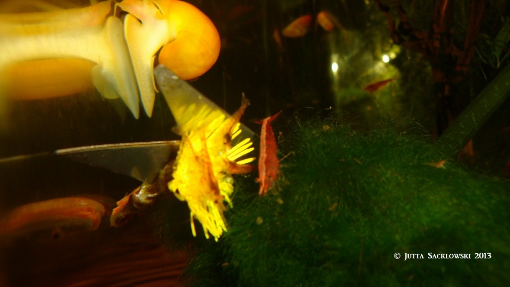 In dem steht die Knoblauchsrauke nicht viel zurück und ist scheinbar schmackhafter für die Garnelen.