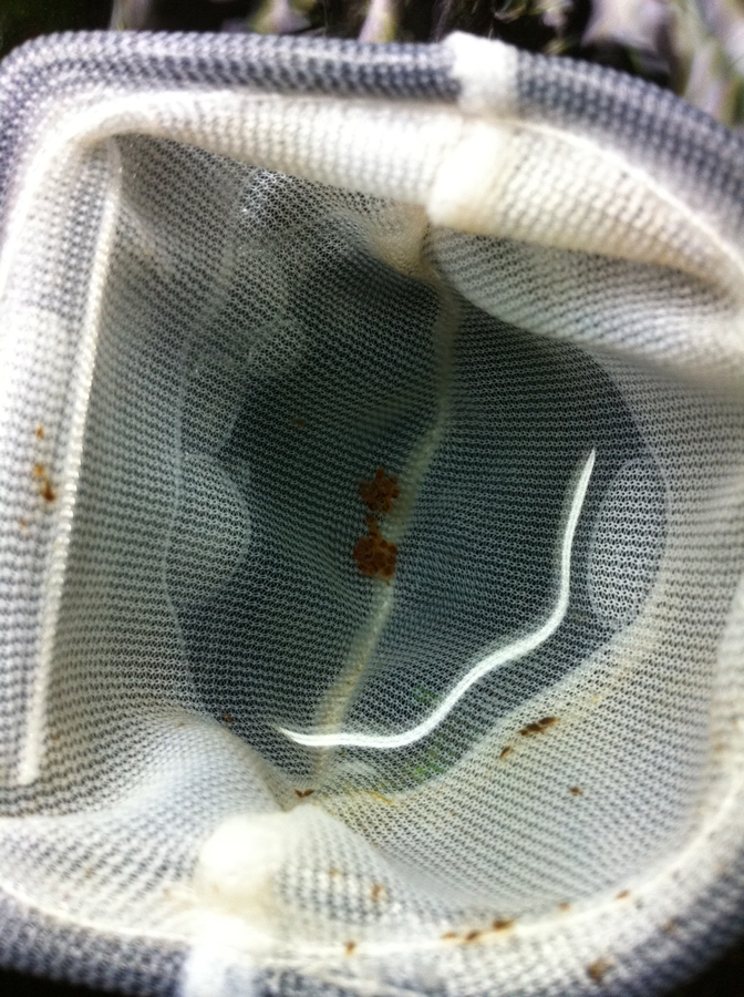 Es scheint so zu sein, als ob der Kescher irgendwie den Schmutz eingefangen hatte (ich hab den heute morgen im Becken ausgeschüttelt, da fiel ne Menge Schwebkram raus), das nächste mal nehme ich wohl besser einen etwas groberen.