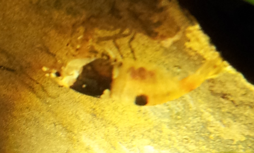 Vor ein paar Tagen hab ich dann eine minikleine Garnele an der Scheibe gesehen...es ist nurnoch ein Doppelhinomann und lauter 1cm Modelle im Becken...also mußte das die von dem freiheitsliebenden Ei sein :happy: