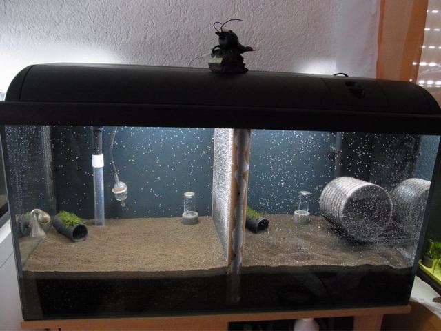 Auf die Idee hat mich Bernhard E. gebracht. Wir hatten uns mal wieder über Filter unterhalten und ich wollte mein 80er Becken eh komplett neu machen...hat also super gepasst.