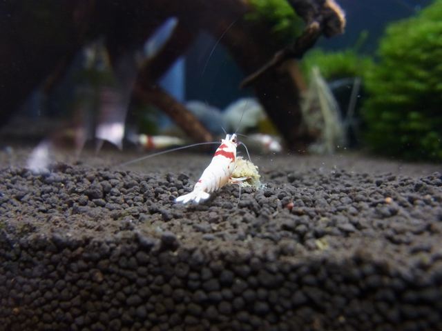 Gestern hab ich mal nen kleinen Krümel White Sticks gefüttert. Dieser blieb super auf der Oberfläche liegen und wurde nicht wie beim normalen Bodenfilter zügig weggesaugt. So hatten die Garnelen genug Zeit um ihr neues Futter zu entdecken und probieren *gg*