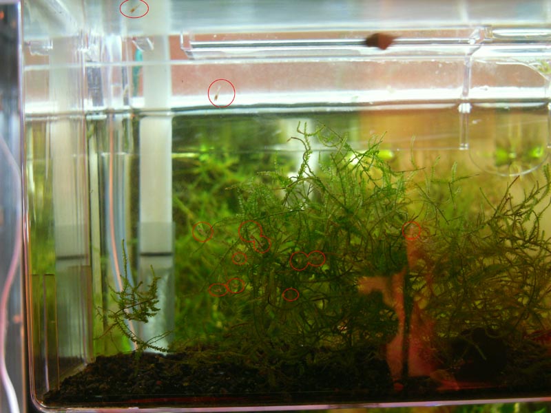 @ Jürgen: Deinem Hüpferling-Versuch kannst Du unter die Arme greifen, indem Du in das Becken einen Luftschlauch legst, einfach so ohne Ausströmer mit Saugnapf o.ä. am Boden befestigen und dort aus einer kleinen Luftpumpe stark gedrosselt Luft zuführen, ca. 1-2 Blasen pro Sekunde. Das sorgt für eine ganz leichte Umwälzung und Frischluftzufuhr, funktioniert auch bei Daphnien sehr gut.