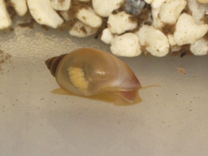 Bild 3=meine gelbe ?-Blasenschnecke,gelbes Häuschen,gelber Fuß,wird "groß".
