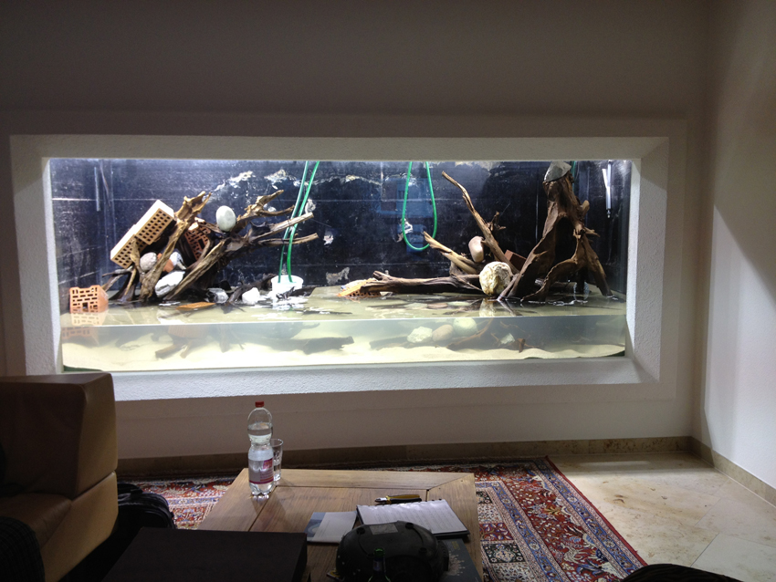 Ein paar erste quick+dirty-Bilder vom Einrichten. Wir haben vom Freitag Morgen früh bis gestern Nacht fast ununterbrochen am Becken gearbeitet. Diese Nacht wurde nun befüllt. Heute folgt die ganze Technik. Bilder folgen.