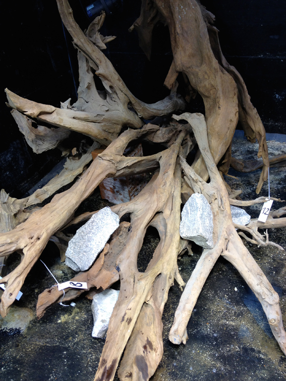 Solltet Ihr Euch für Diskus entscheiden, würde ich das Becken mind. 4 Monate einlaufen lassen. Das Holz sieht zwar super aus, aber besonders zu kurz gewässerte Mangrove führt bei Diskus gern mal zu Problemen. Und Dein Kunde wird ziemlich genervt sein, wenn die Burschen ständig dunkel in den Ecken stehen. Naja, und einzelne Holzteile wegen "Gammel" wieder zu entfernen wird unmöglich sein.