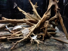 Solltet Ihr Euch für Diskus entscheiden, würde ich das Becken mind. 4 Monate einlaufen lassen. Das Holz sieht zwar super aus, aber besonders zu kurz gewässerte Mangrove führt bei Diskus gern mal zu Problemen. Und Dein Kunde wird ziemlich genervt sein, wenn die Burschen ständig dunkel in den Ecken stehen. Naja, und einzelne Holzteile wegen "Gammel" wieder zu entfernen wird unmöglich sein.