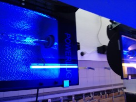 Anbei wiedermal ein paar neue Fotos. Das Becken wurde nun sauber verrohrt und wir haben die 10 x 400W HQI montiert. Da demnächst der Kran kommt, sind sie noch nach unten gekippt und werden mit Schutzfolie gepolstert und überzogen. Damit könnte man vermutlich ein Fussballfeld beleuchten :) Ausserdem haben wir die ganze Scheibe in Karton eingepackt, damit nix passiert, wenn wir am Handwerken sind.