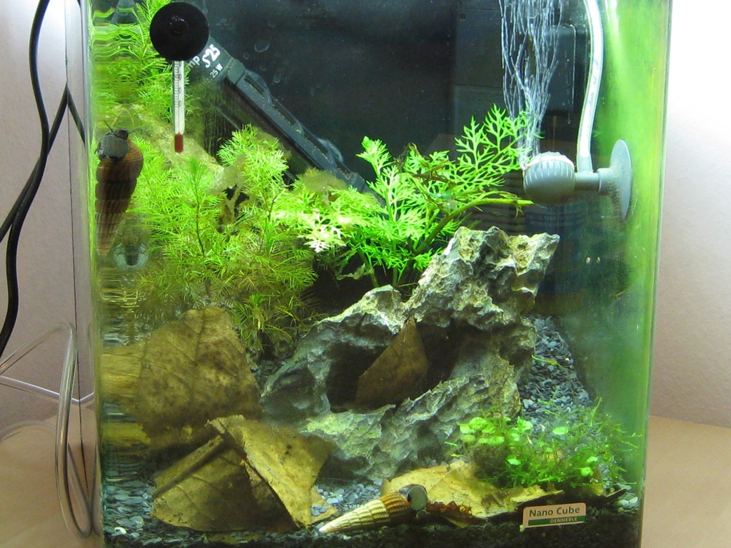 Dann haben wir 10 Kardinalsgarnelen eingesetzt (Wildfänge), und 2 Tylomelania.