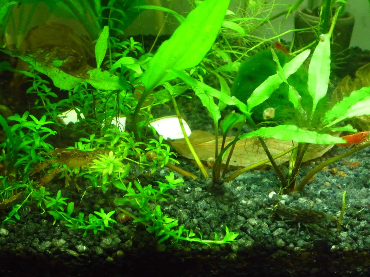 Die Kleinen sind eigentlich schon größer und kriegen auch schon Farbe und sie machen auch schon einen auf "dicke Hose" wenn mal ein Garnelenbaby um die Ecke kommt. Das ist echt putzig! Ich hab noch ganz frisch Baby´s aber die sind sooo winzig. Wie halt so kleine Garnelen auch. Und mit meiner Kamera krieg ich die nicht fotografiert.