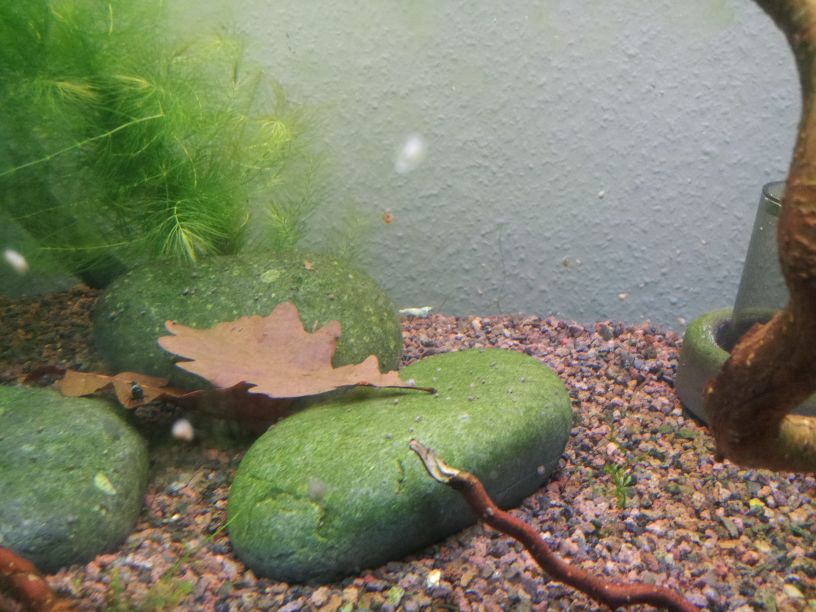 Garnelen ernähren sich gerne von den " Sticks " die die Schnecken als Stoffwechselprodukt ausscheiden.