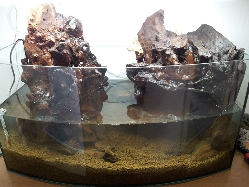 In den Wurzel waren schon viele schöne Löcher und Vertiefungen, so dass wir wunderbar Schläuche für kleine Wasserfälle einbauen konnten. Jetzt muß ich mich noch an das plätschern gewöhnen :o