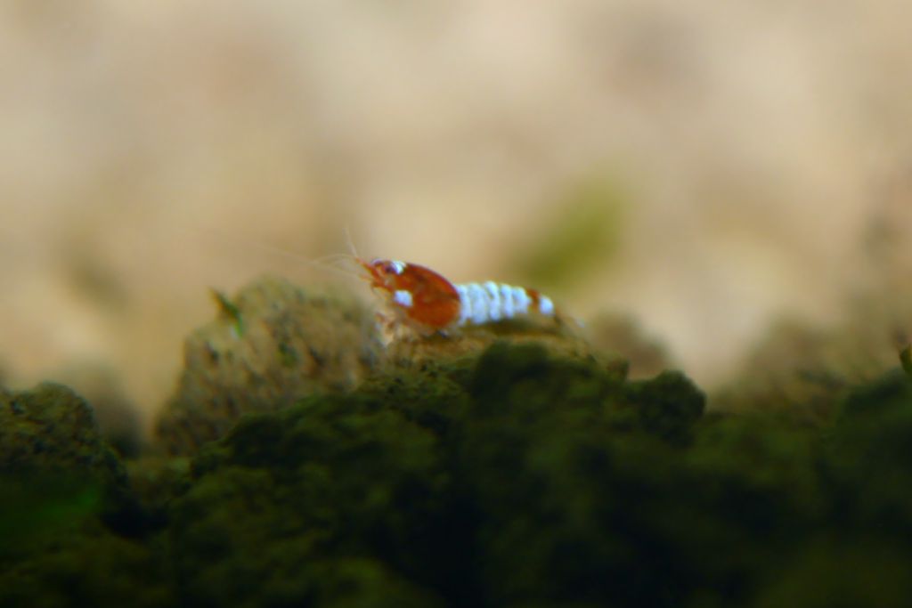 Eins der Larven scheint ganz rot zu werden und hat dabei weiße Bäckchen.
