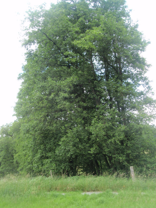 In die andere Richtung haben wir ein schwach fließendes Gewässer. Habe das Ufer etwa 2km abgefahren mit dem Rad: kein einziger Erlenbaum!