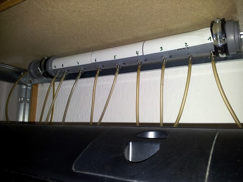 Ich habe jedes Ventil mit einer Nummer versehen und das entsprechende AQ hat natürlich die Selbe. Denn wenn ich die ganzen Schläuche hinter den Aquarien verfolgen sollte, dann gute Nacht.
