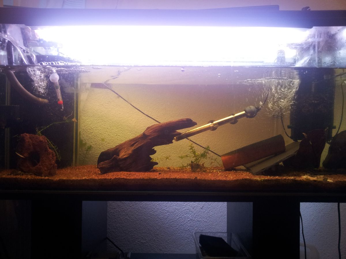 An Neutrinogarnele: Also Seemandelbaumblätter und Walnußlaub sind die ganze Zeit drin gewesen. Infektion wäre aber möglich, da mein Freund bei seinem Becken eine Infektion gerade hatte und ich sein Leitwertmessgerät benutzt hatte, ohne es vorher abzuwaschen. Ob die Färbung aber mit der Infektion zusammenhängt, wäre eher unwahrscheinlich, da sie schon immer Rot war. Also Sauerstoffmangel gibt es bei mir nicht, siehe Bilder (sind zwei Rucksackfilter, der eine für 200l und der andere für 60l). An der Temperatur könnte es aber schon liegen, da ich ein Sonnenfenster habe, liegt die Temperatur im Becken immer so bei 26°-28°.