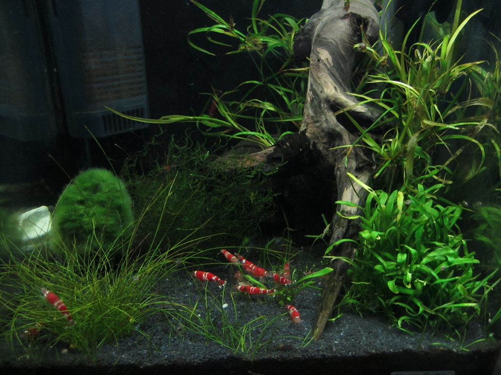 Dann habe ich etwa mit 13 ein 300 Liter Aquarium übernohmen. Im Aquarium befinden sich Kongosalmer, Kirschfelcksalmer, Skalare, Welse , Prachtschmerlen und andere Fischarten. Mit 15 habe ich mir einen Cube gekauft wo ich mich auch mit dem "Garnelen Virus" infiziert habe :D . Ich habe mir erst 10 Crystal Reds zugelegt, aber es hat nicht wirklich geklappt mit dem Überleben der Tiere ich weiß auch nicht warum ;( . Nach ein paar Monaten habe ich mich wieder entschloßen mit den Garnelen anzufangen diesmal habe ich mir Zeit gelassen mit dem einfahren. Nach einem Monat habe ich mir wieder 10 Crystal Red Garnelen gekauft. Das Becken existiert immer noch und die Garnelen vermehren sich.