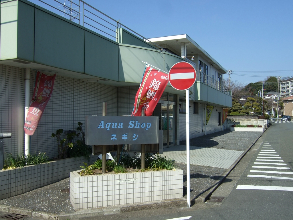 Weiter ging es zum „Negishi Aquashop“, der von außen unspektakulär aussieht. Dort findet sich das aus dem Buch bekannte Motiv des Ladenschildes. Im Laden selbst dann… Enttäuschung, leider!