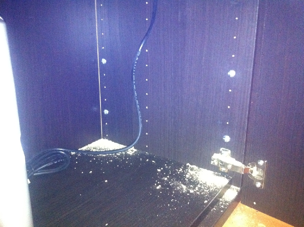 + Ebenfalls habe ich eine LED Hintergrundbeleuchtung + Schrankinnenbeleuchtung angebracht. Die Hintergrundbeleuchtung soll vorallem, in der Zeit wo die Hauptbeleuchtung von Becken aus ist einen Blickfang aus dem Becken erzeugen. :D