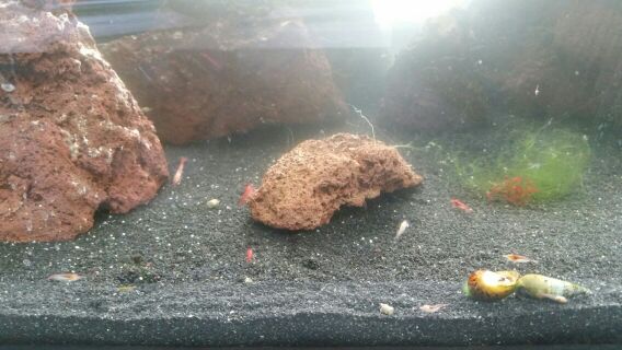 Nun setze ich auch noch einmal ein paar Bilder rein. Inzwischen sind die Rubras in ein Scapers Tank 50 Liter eingezogen. Bodengrund dieses mal JBL Sansibar Black. Anfangs haben sich die Tiere überhaupt nicht blicken lassen. Ich konnte jedoch regelmäßig Larven und dann auch Jungtiere sichten. Die Population ist inzwischen so groß geworden das sich die Tiere heraus trauen. Es schwimmen immer welche herum. Wenn ich schätzen müsste würde ich sagen es sind mindestens 60 Tiere.