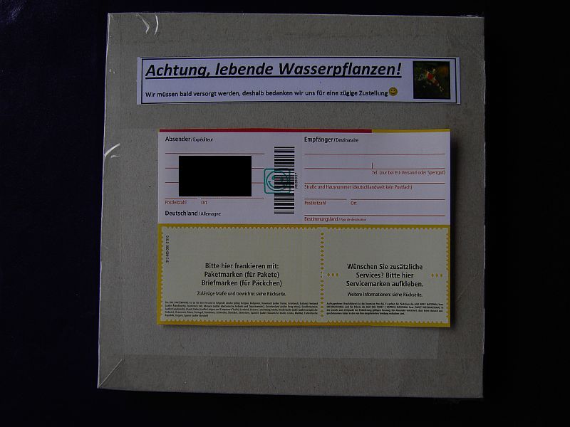 Hallo deswegen kleb ich "Achtung, lebende Wasserpflanzen....." drauf...auch auf meine Garnelen und Schneckenpakete...