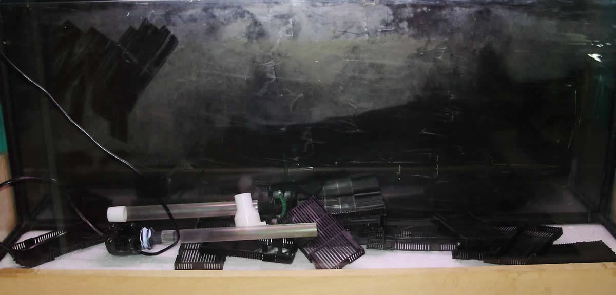 Bodenfilter aufbauen -vorübergehend mit einem Circulator betrieben, ein Außenfilter folgt noch- und Äste eingesetzt, sowie anschließend den ADA aufgeschüttet.