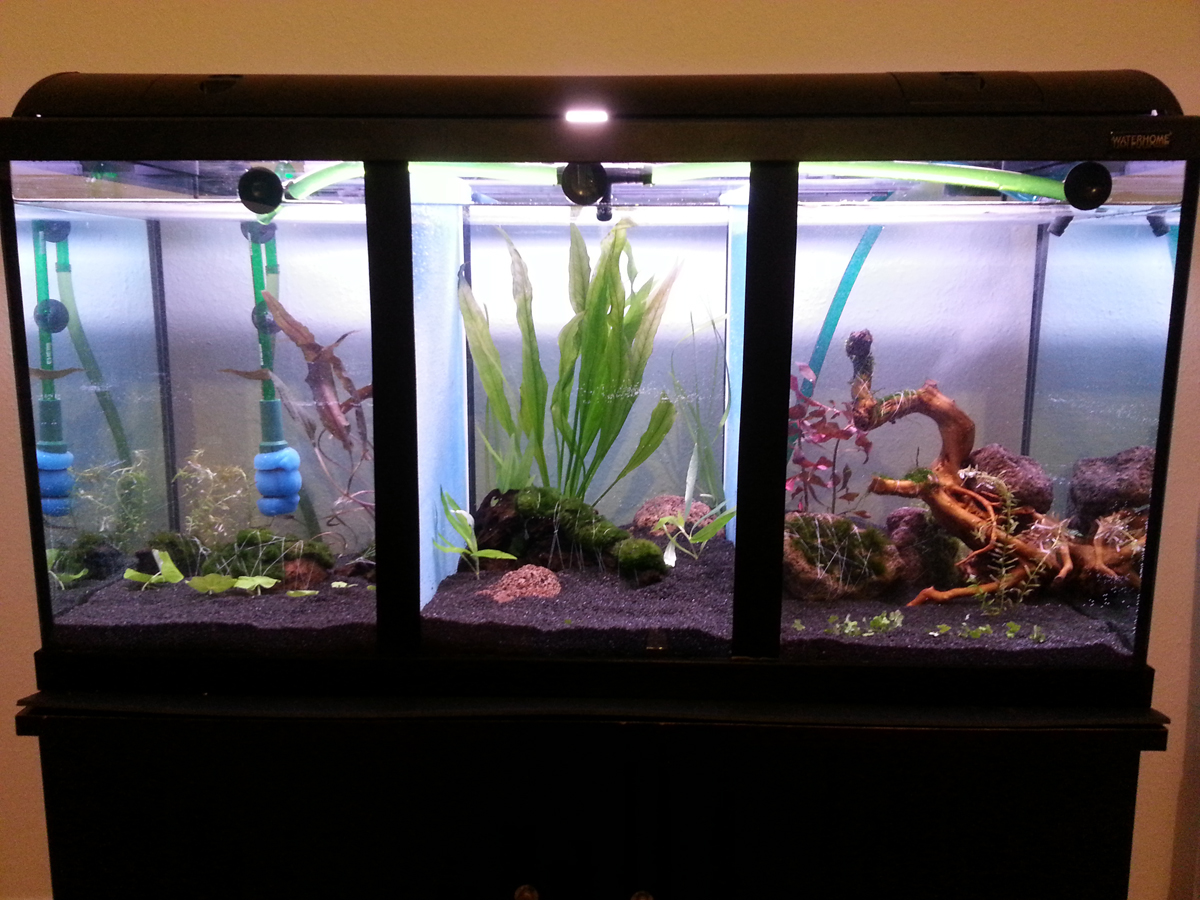 Gefiltert wird das ganze mit einem Eheim ecco pro 300 wobei im rechten Abteil das Wasser abgesaugt wird und in der MItte und ganz Links das Wasser einläuft. Ich denke somit sollte ausreichende Zirklulation vorhanden sein.